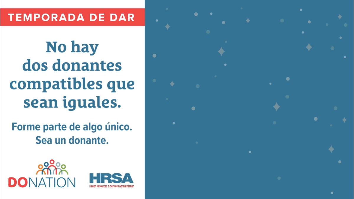 Gráfico de temporada de donar 1 - Español (JPG, 847,08 KB) Gráfico de temporada de donar 2 - Español (JPG, 521,32 KB) Gráfico de temporada de donar 3 - Español (JPG, 593,64 KB) Temporada de donar - Animación - Español (GIF, 2,59 MB)